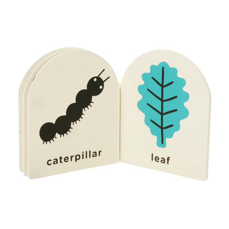 Capture baby's attention with high-contrast images and easy-to-read letters. Foster baby’s vision and language development from day one. As baby grows each page offers simple words and images to support beginning reading skills and image recognition. This 8-page book is made of sturdy board for easy wiping.