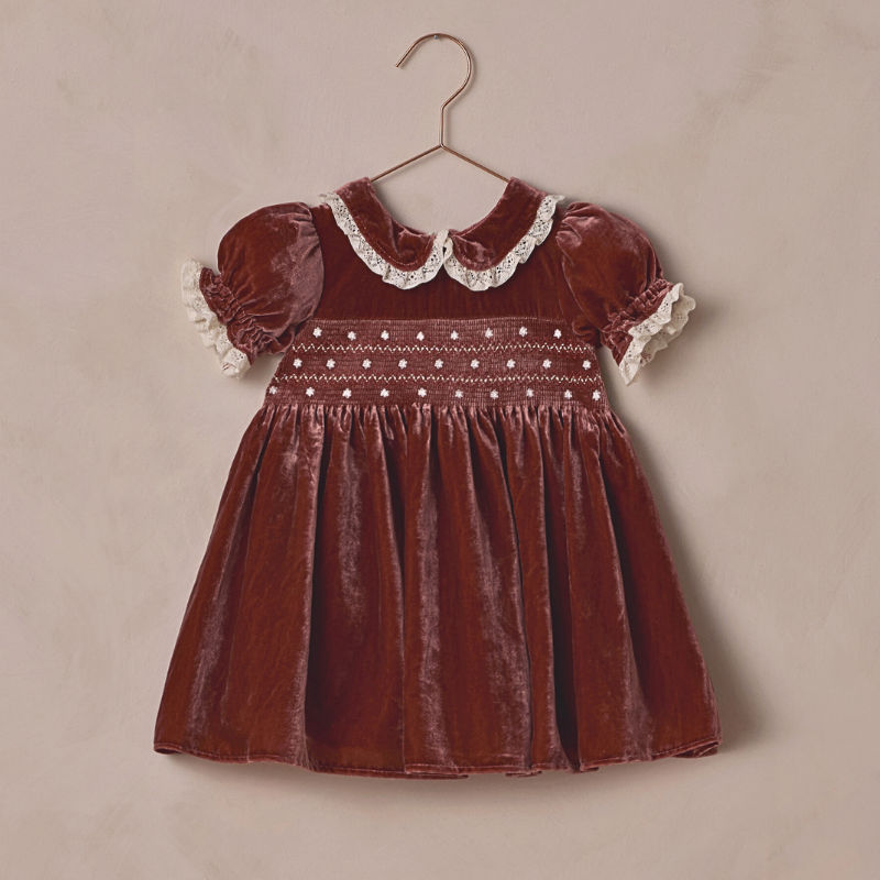 Elizabeth Ruby Velvet Smocked Dress