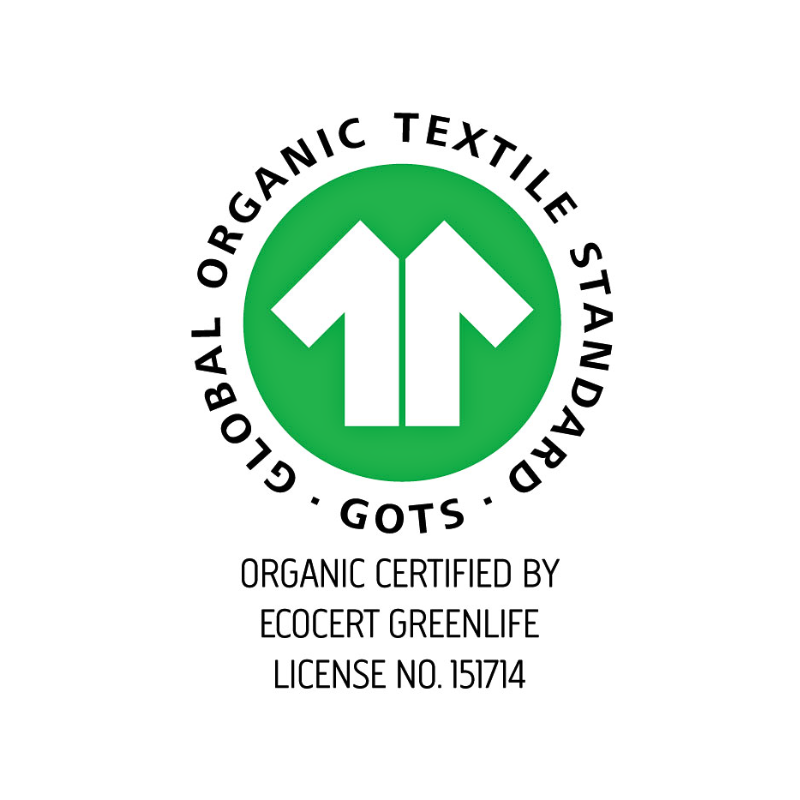 The product is GOTS Organic certified which means, that the cotton is certified organic. Also the strictest concern for the environment has been taken in all the other processes, like dying, knitting and sewing. GOTS also takes into consideration the work conditions for the workers.