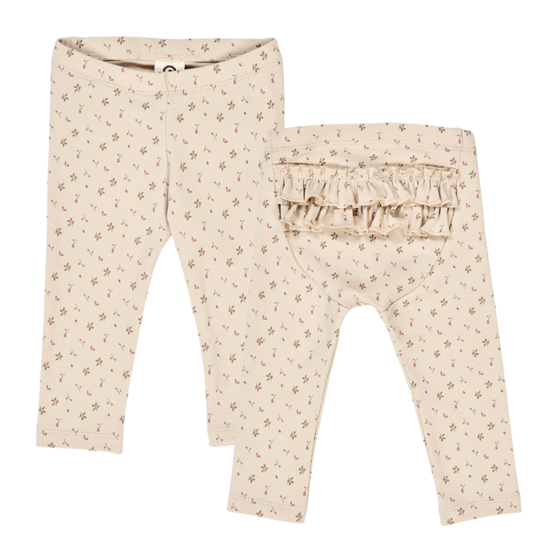 These sweet leggings with the most beautiful all-over floral print and feminine ruffles on the back.