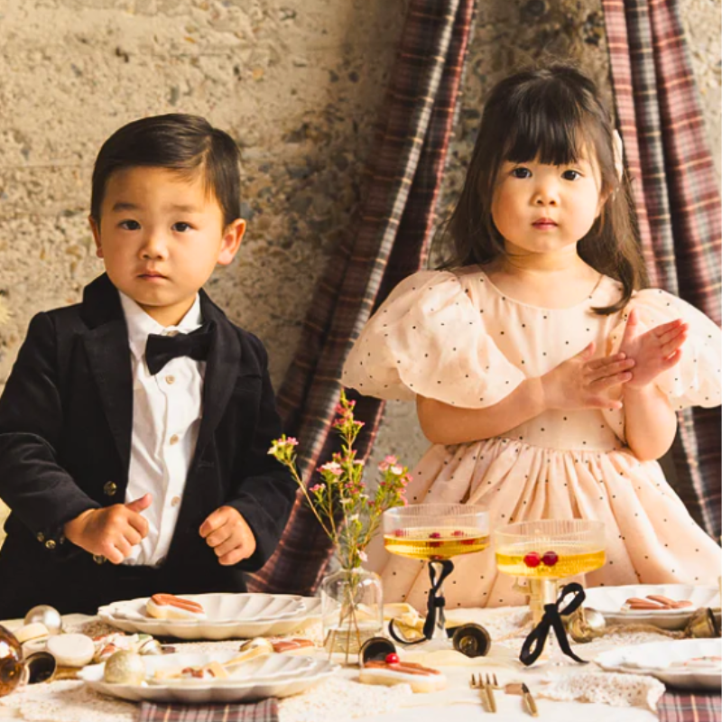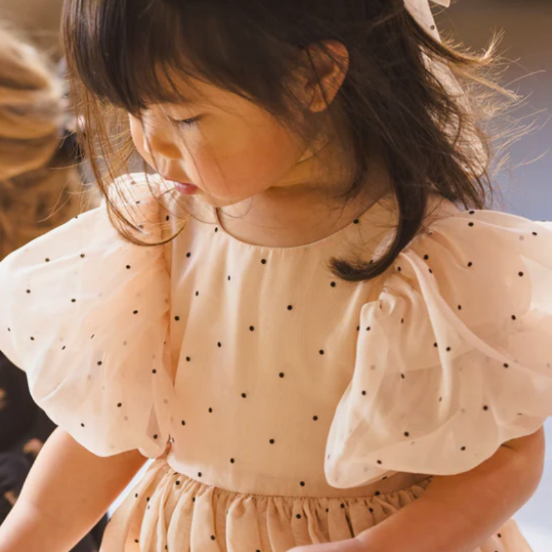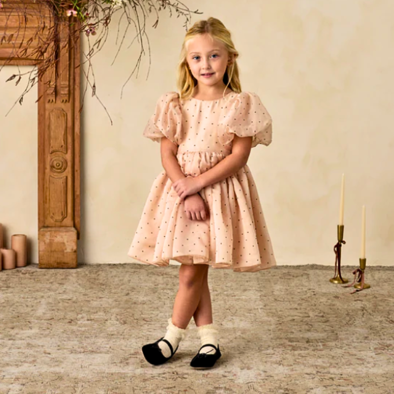 This STUNNING dress is ideal for any special occasion. This Sofia Dress captures all the fairy princess feels with oversized balloon puff sleeves, a V-back with zip closure, and a full, twirl-worthy skirt crafted in flocked organza. Coordinating bloomers included with sizes 12M - 2Y.
