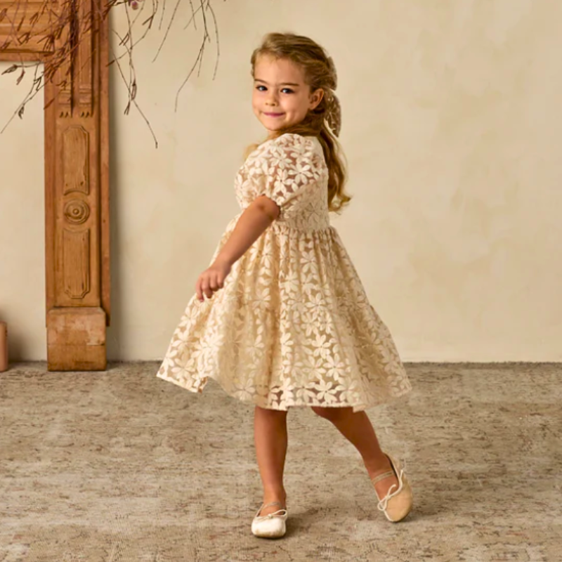 The Elizabeth Dress features a smocked bodice with dainty embroidered details, puff sleeves with lace trim, and a scalloped lace Peter Pan collar. Crafted in soft velvet, this timeless silhouette evokes a sense of tradition and nostalgia, making it the perfect keepsake dress for special occasions and holiday gatherings.
