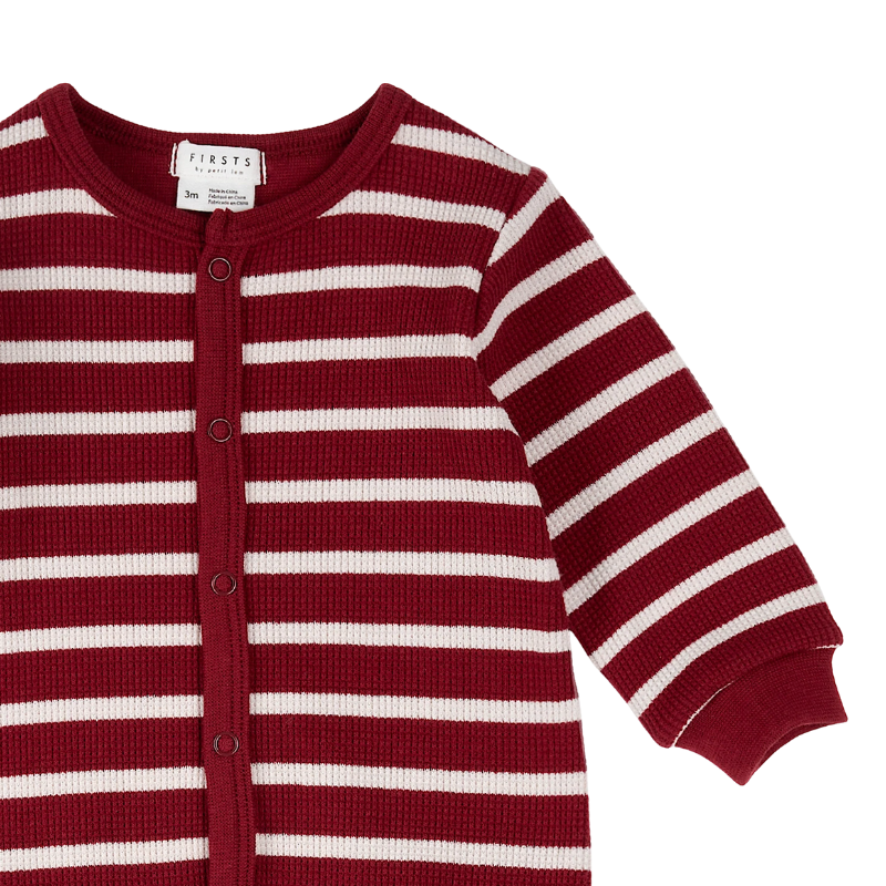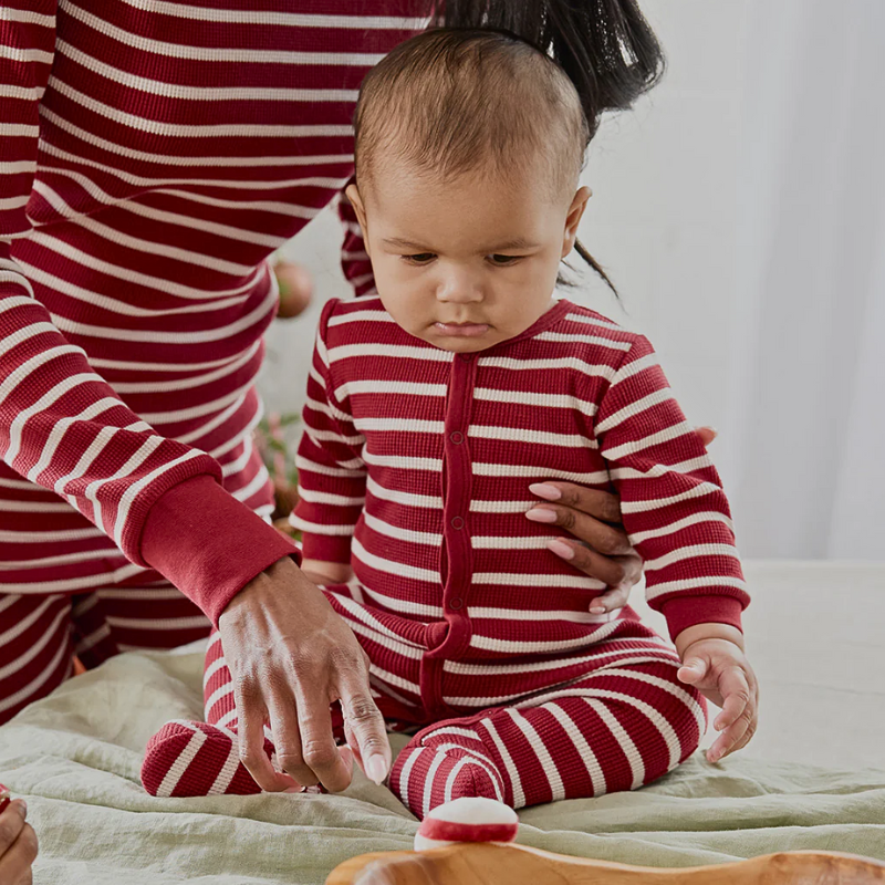 Brighten up bedtime with this Scarlet Red Stripe sleeper. Made from soft thermal cotton, it’s perfect for the colder months (and of course the festive season). Featuring ribbed cuffs, integrated feet, and easy snap buttons, the sleeper is designed for mom, dad and baby’s comfort and convenience. Matching PJs are also available (12-24m).