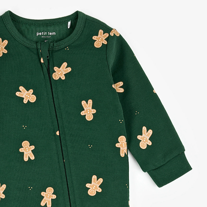 Sweet as can be, this Gingerbread print playsuit is made from an ultra-soft, organically grown cotton fleece to keep your littlest pudding warm and snug on cold days. With ribbed cuffs and ankles, they’re free to explore and roam the house and its festive feel. The full-length zip makes changing and dressing easy, so everyone can get back to the fun.