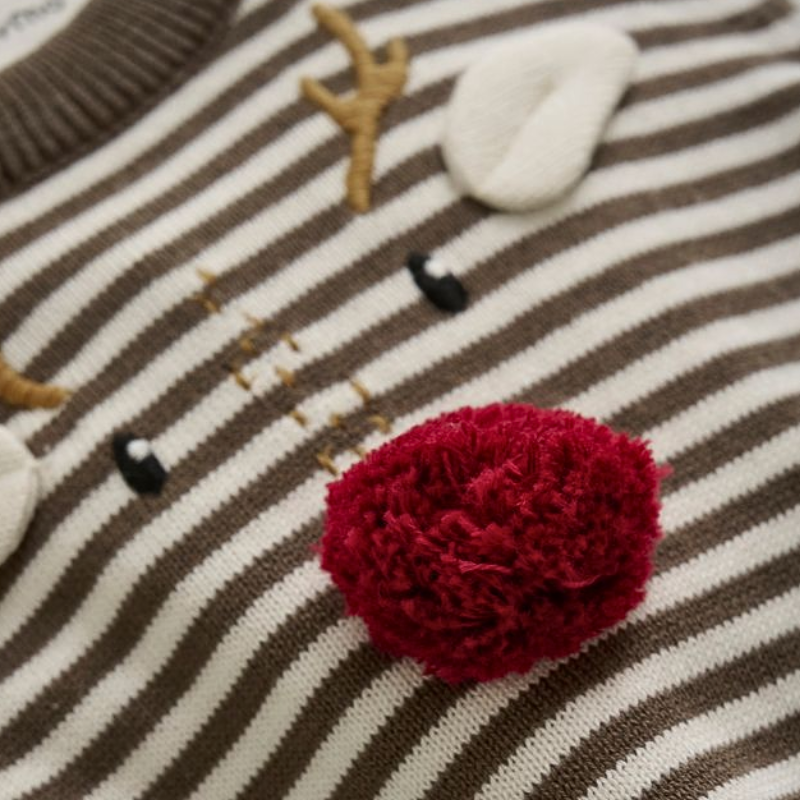 This "dear" reindeer holiday sweater is so sweet for baby's first Christmas.