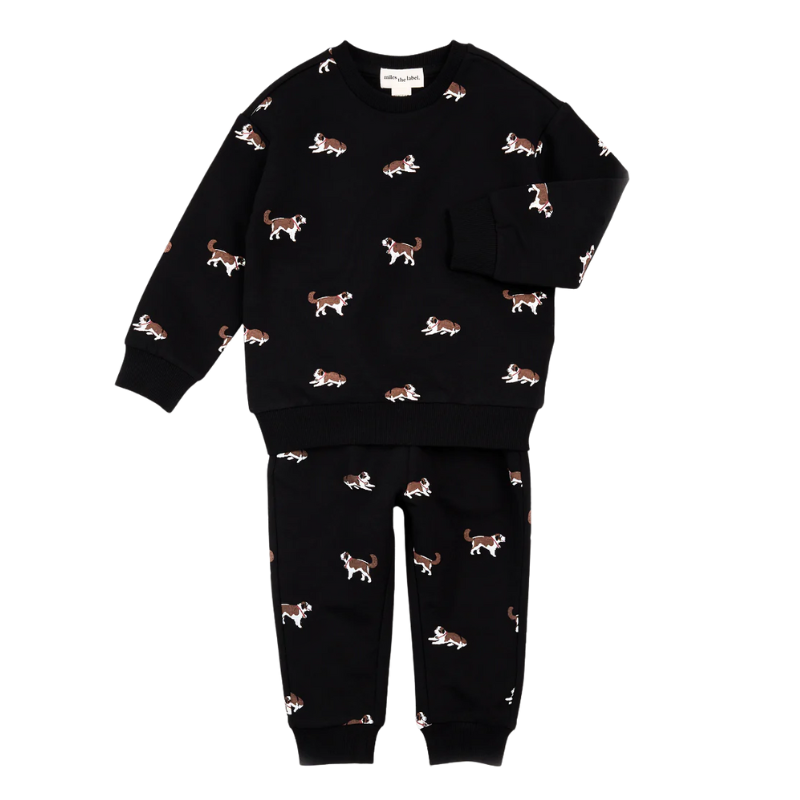 This cozy jogger set is perfect for little adventurers. Both the sweatshirt and joggers feature our playful St. Bernard print and are made of organically grown cotton fleece to keep him warm in the transitional season. With easy dressing features like a rounded neckline and an elasticated waistband, the jogger set is a great choice for get-up-and-go mornings.