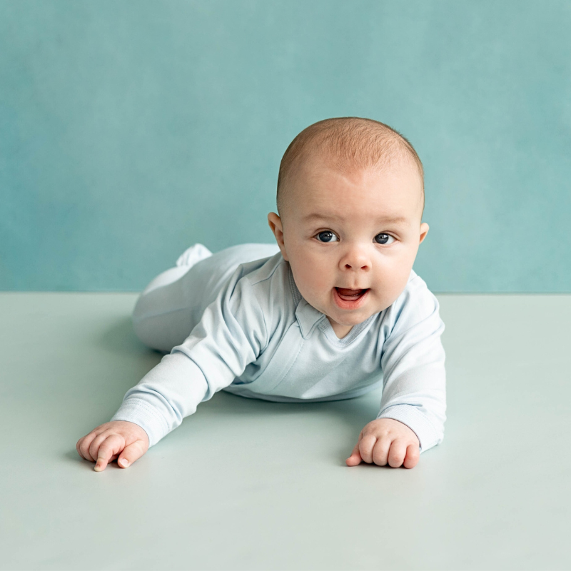 - Hidden 2-way zipper with inner placket to protect baby's skin