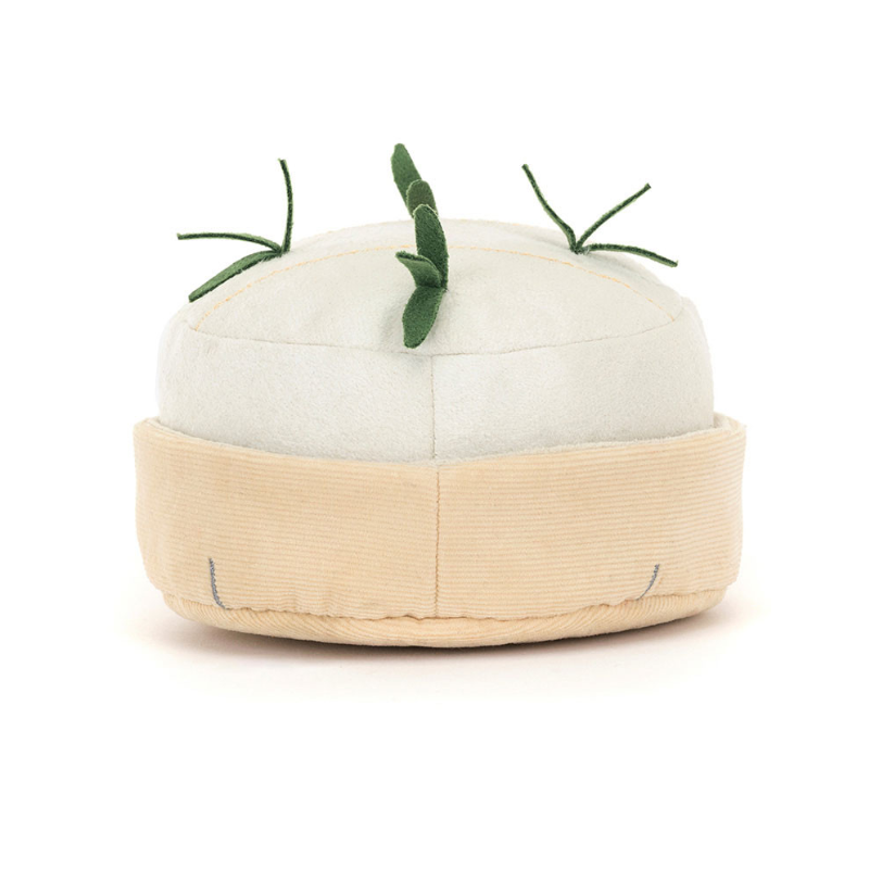 Amuseables Camembert is here to spread cheesy joy. This cream suedette cheese has stitched rind detail, and is topped with sprigs of suedette rosemary. Nestled in its fine cord container with staple detail, this smiling cheese can be taken out of its box for foodie hugs. The perfect gift for any foodie friend.