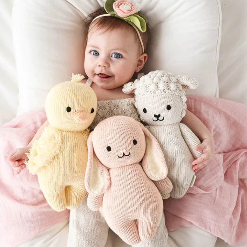 Absolutely adorable and oh so collectible! These hand-knit baby animals are the perfect as an heirloom-quality baby lovie. They are lovingly handcrafted from natural Peruvian cotton yarn, with carefully considered details. At just a little bigger than your hand, they’re the softest, most lovable companions we could imagine. You and your little one will love collecting them all!