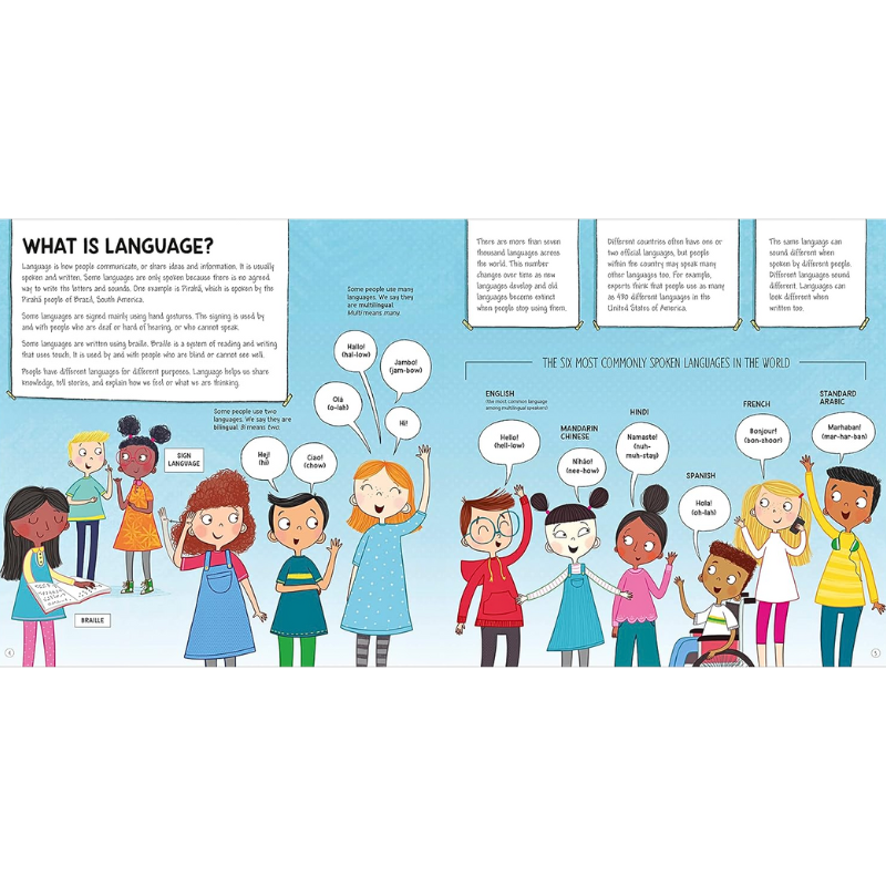 Humans’ use of language is one of our distinguishing features. Language allows us to communicate what we think, what we want, what we feel, and what we have learned. Some 100,000 years ago, humans began speaking. Since then, we have developed nearly 7000 languages. Languages are living things; they evolve and change over time. They even travel! People carry their language with them and spread it. Large language families even have their own family trees, such as Spanish, French, English. Different languages can be mixed and combined to create new languages with similar words, pronunciation, and grammar rules. Languages can even become extinct if they are not shared and learned by each new generation.