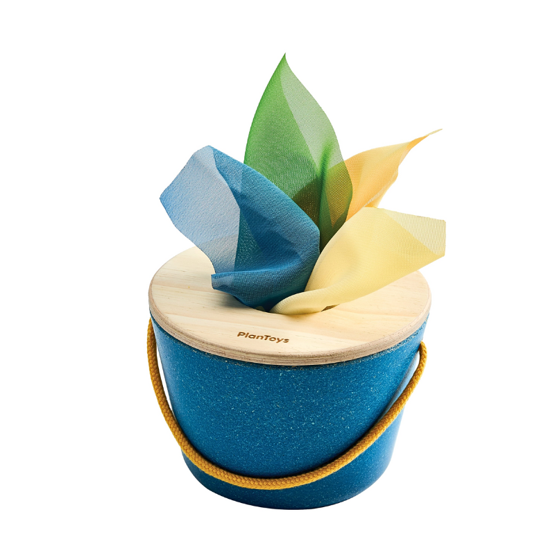 This tactile, travel-friendly toy engages children in pulling, inserting, and exploring with 4 tissues through the holes at the top and bottom, strengthening fine motor skills, hand-eye coordination, and sensory development. It encourages problem-solving, grasping techniques, and introduces cause-and-effect relationships. The bucket is easy to carry, promoting independent play.