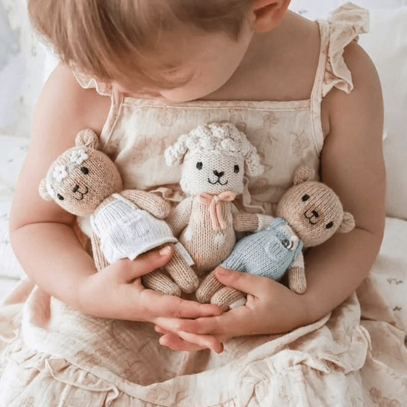 Introducing the Tiny Collection by cuddle+kind. Beautiful hand-knit tiny dolls with stunning craftsmanship and exquisite details that make them little works of art. You’ll love to collect and share these 6" renditions of beloved cuddle+kind characters.