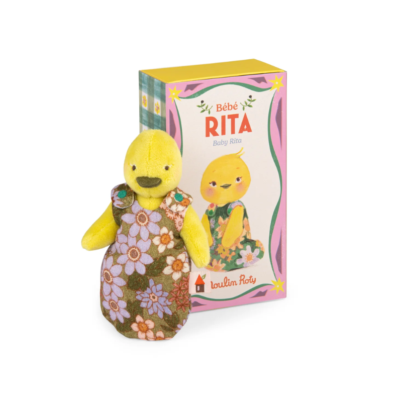 Baby Rita loves to hum and sing her heart out at night, all snug in her pretty floral sleeping bag, which fastens with velcro for easy removal. With her bendable legs, she can sit up for playtime. What a cheerful little duck she is!
