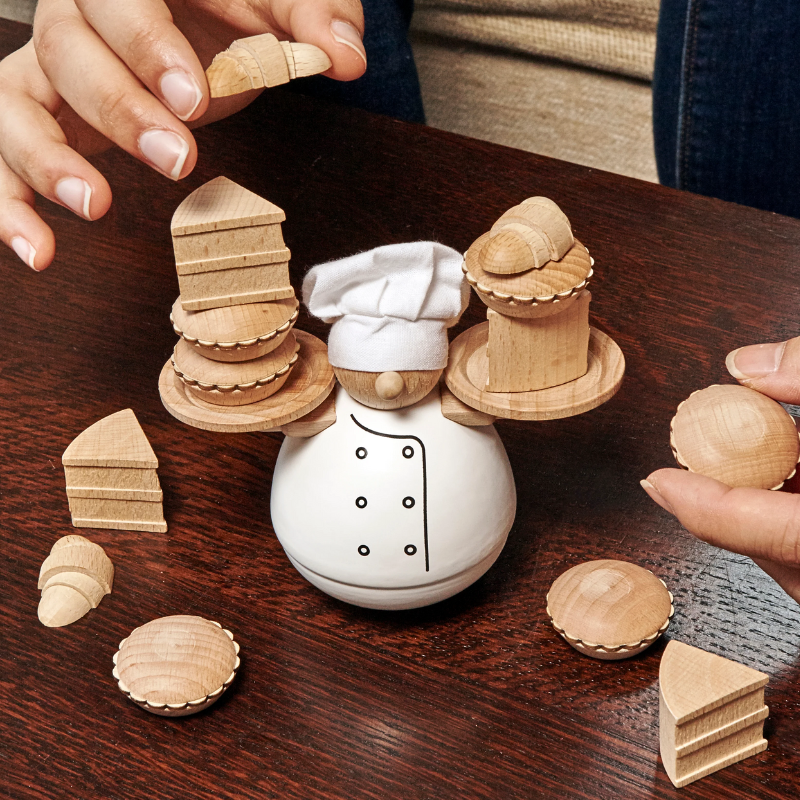 Take turns piling on the pastries, but don't let the Baker drop it all! Includes pies, cakes and croissants! Employ your steady hand, fine motor skills, and hand-eye coordination in this strategic game. Players must carefully place the objects with precision to maintain the balance and stability of the structure. The perfect game for family game nights, social gatherings, or solo entertainment, this game provides hours of fun, challenge, and skill development.